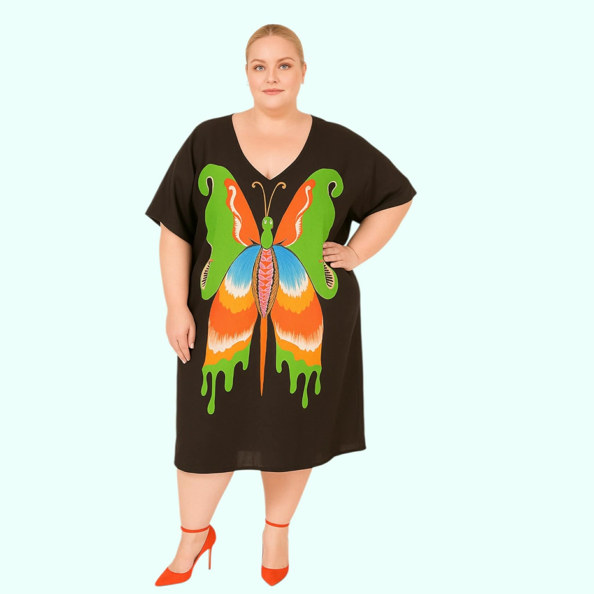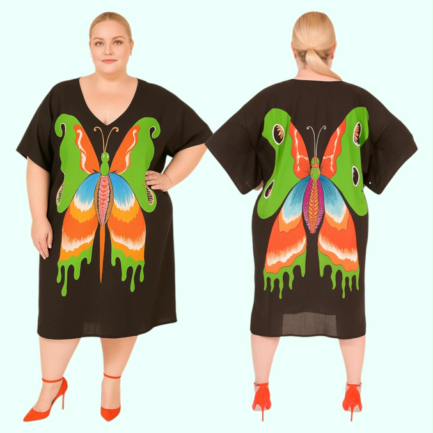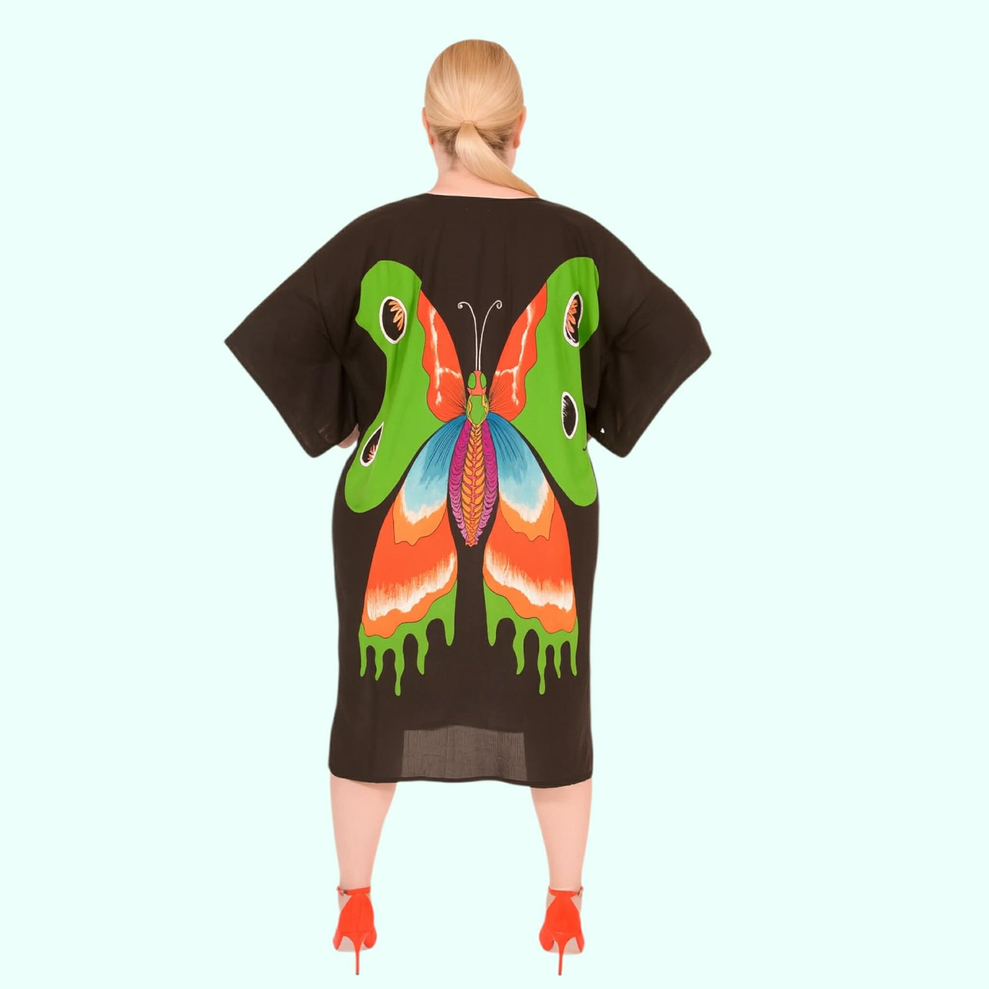 This beautiful sheath is exactly what’s needed for something sleek, casual, or dressy. This linen with the beautiful butterfly strategically printed on the entire front and back adds to the beauty of this comfortable yet stylish tunic-type dress with side splits.