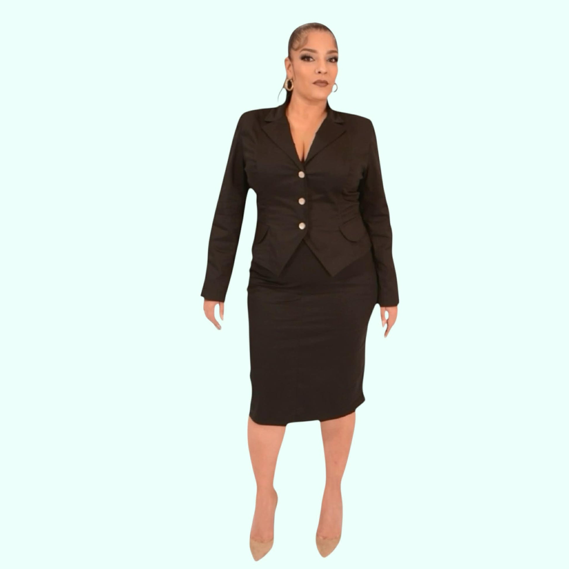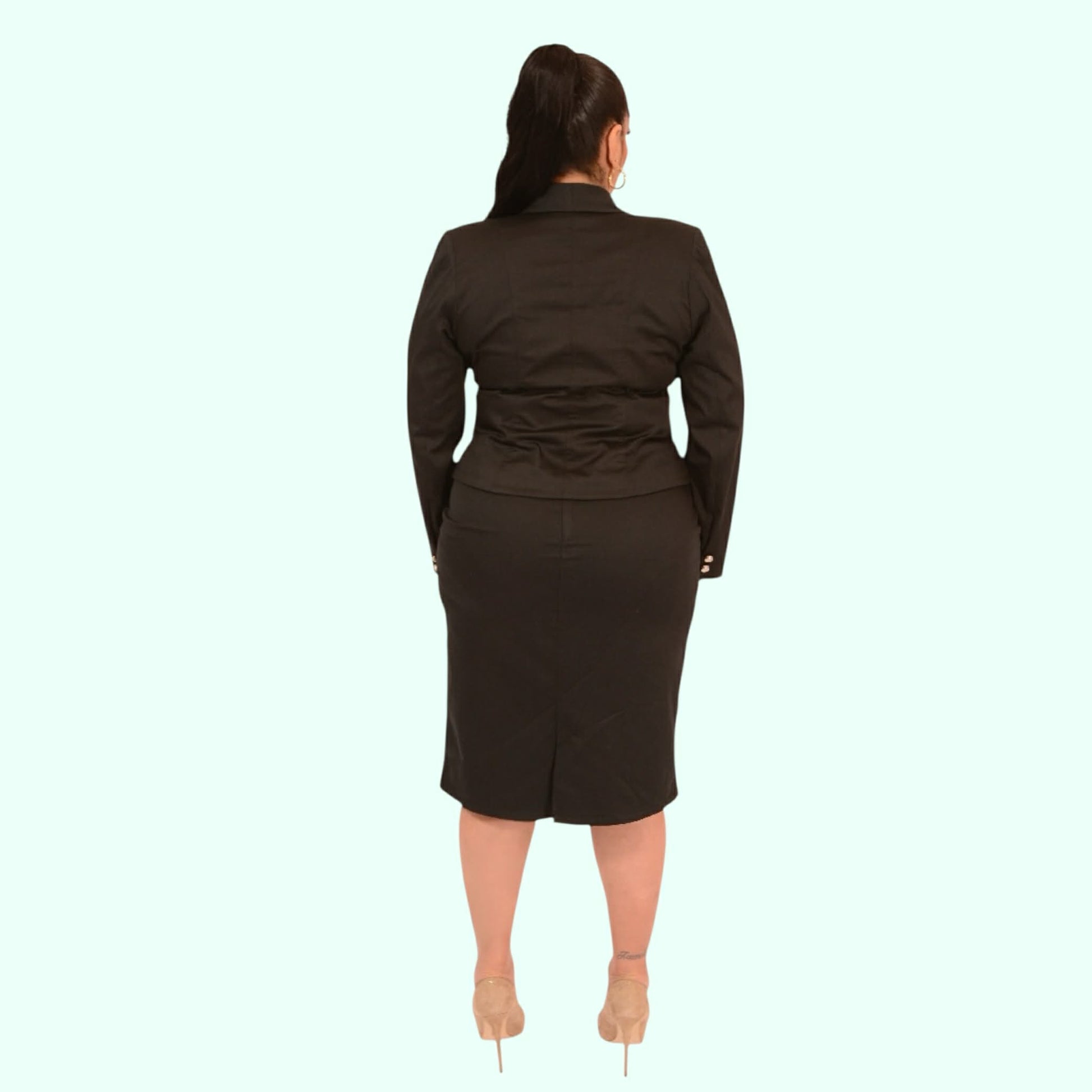 Polished cotton princess seam fitted three button waistcoat. The geometric center front hemline slims the waist while accentuating the hips and butt. This is going to be one of our best sellers.