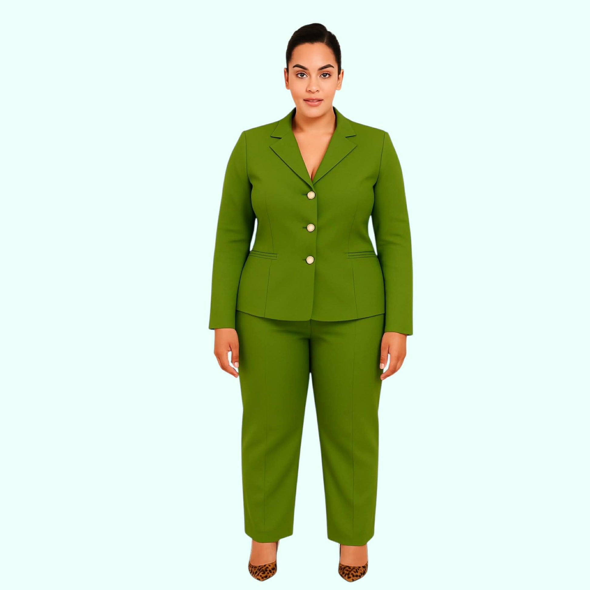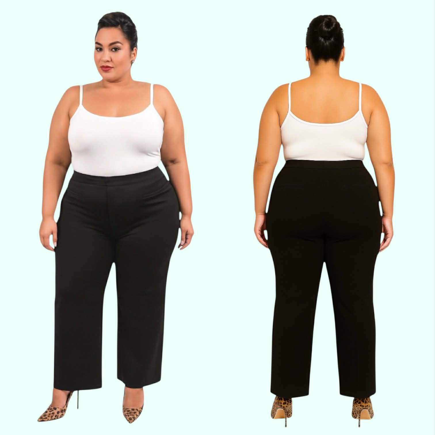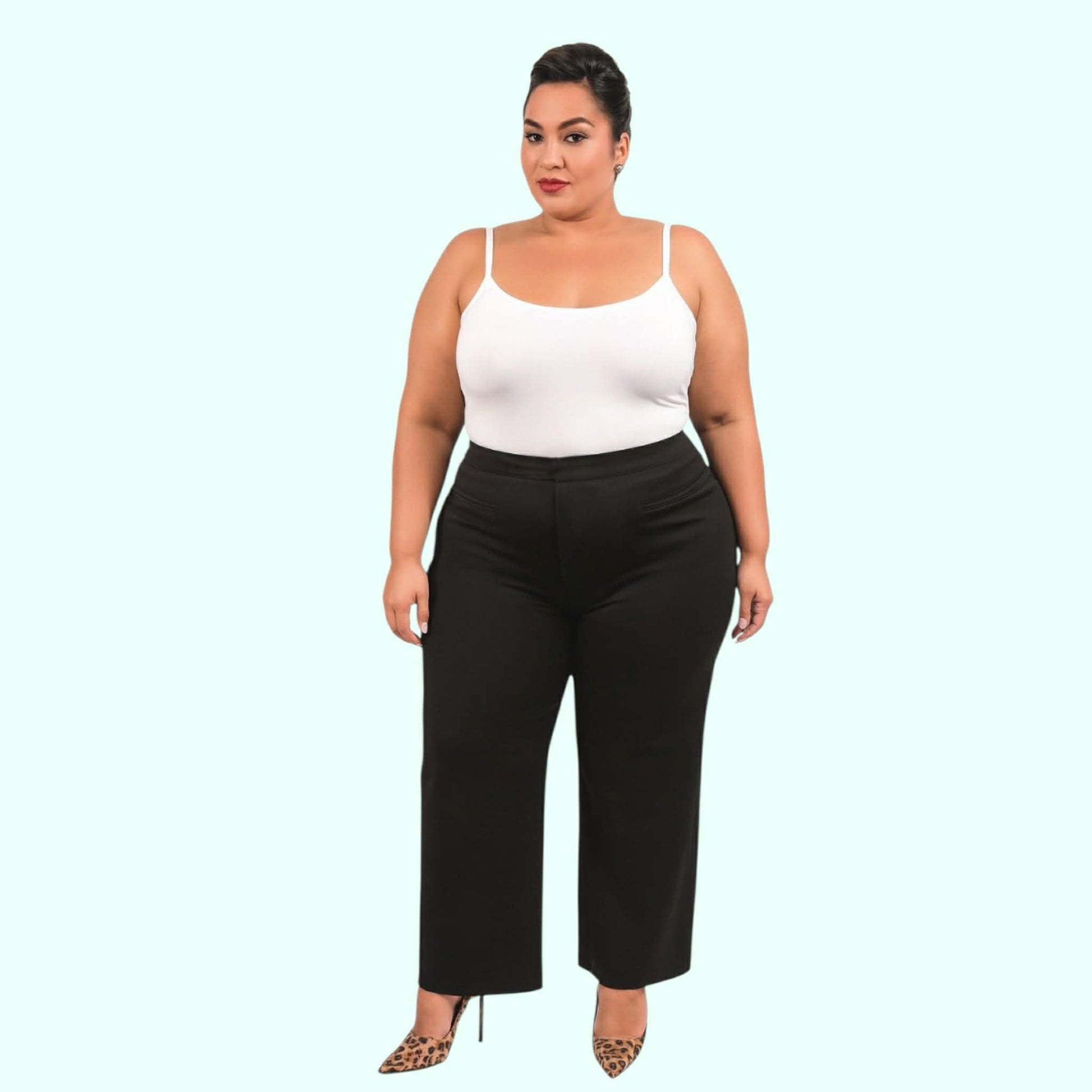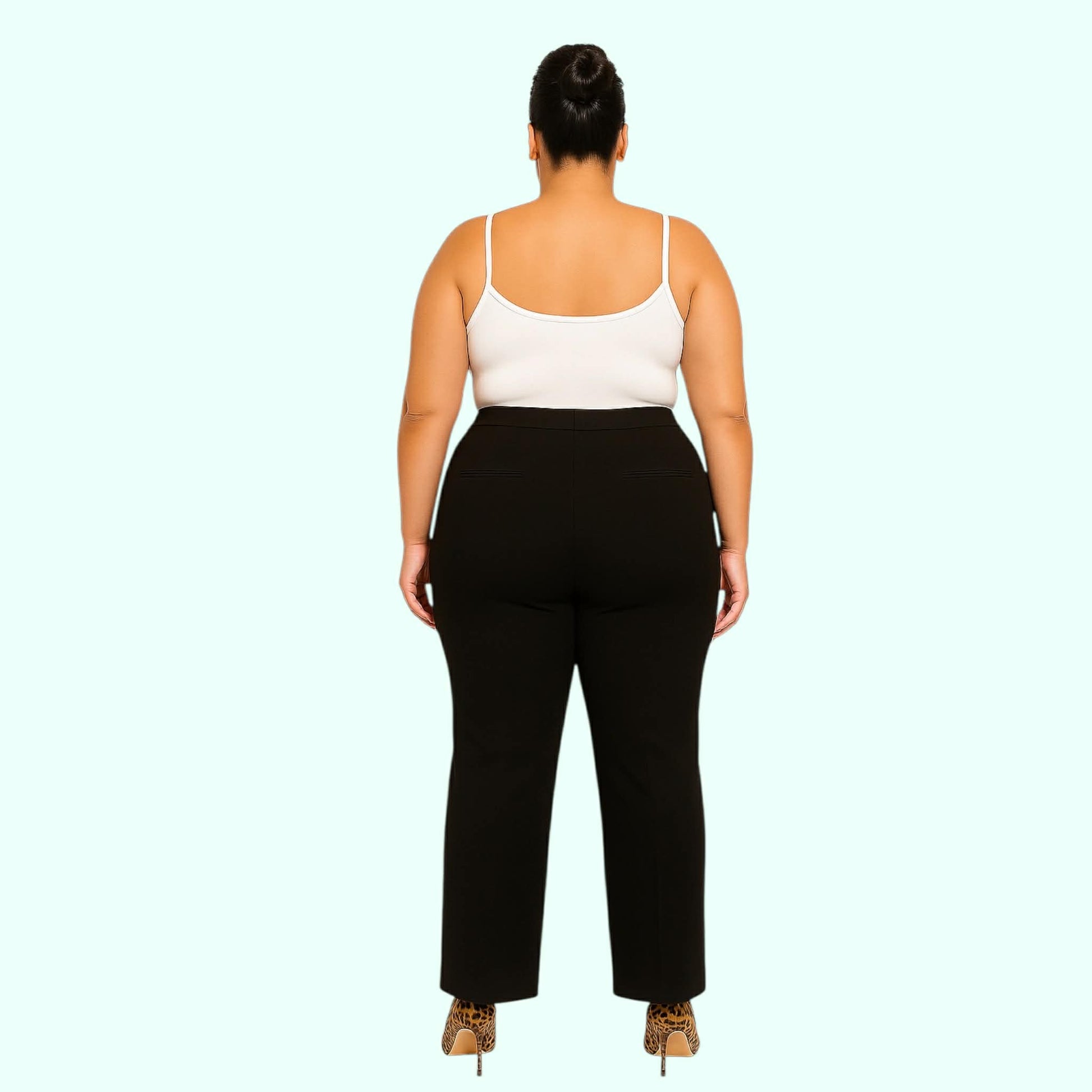 These are our standard pants since the beginning of en.v new york 2008. The front bezum pockets are for those that don't like side pockets. It accentuates all the wonderful curves without any wrinkles or buckling. It also slims down the tummy. Paired with one of our blazers makes it a perfect addition to your wardrobe.